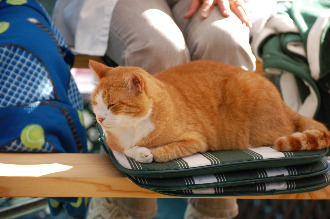 At the tennis club, Mac became the club mascot and friend to everyone. Every day he would go in with me and then head out to the club (and the neighborhood as it turns out). Mac would have breakfast with me, then head to all the ladies in the neighborhood (club members) who would also feed him. So spoiled little cat! During the day he would mostly hang out by the courts and play tennis. He would sit by the net and when the ball hit it he would run and pounce on it. It became known at the club as a “Mac Let”. He became so famous with this that the local newspaper did a feature on him. During our professional tournaments (and virtually every day for that matter), he would sit on the front desk at the club and welcome everyone. Mac got lots of love and gave it back in spades.
